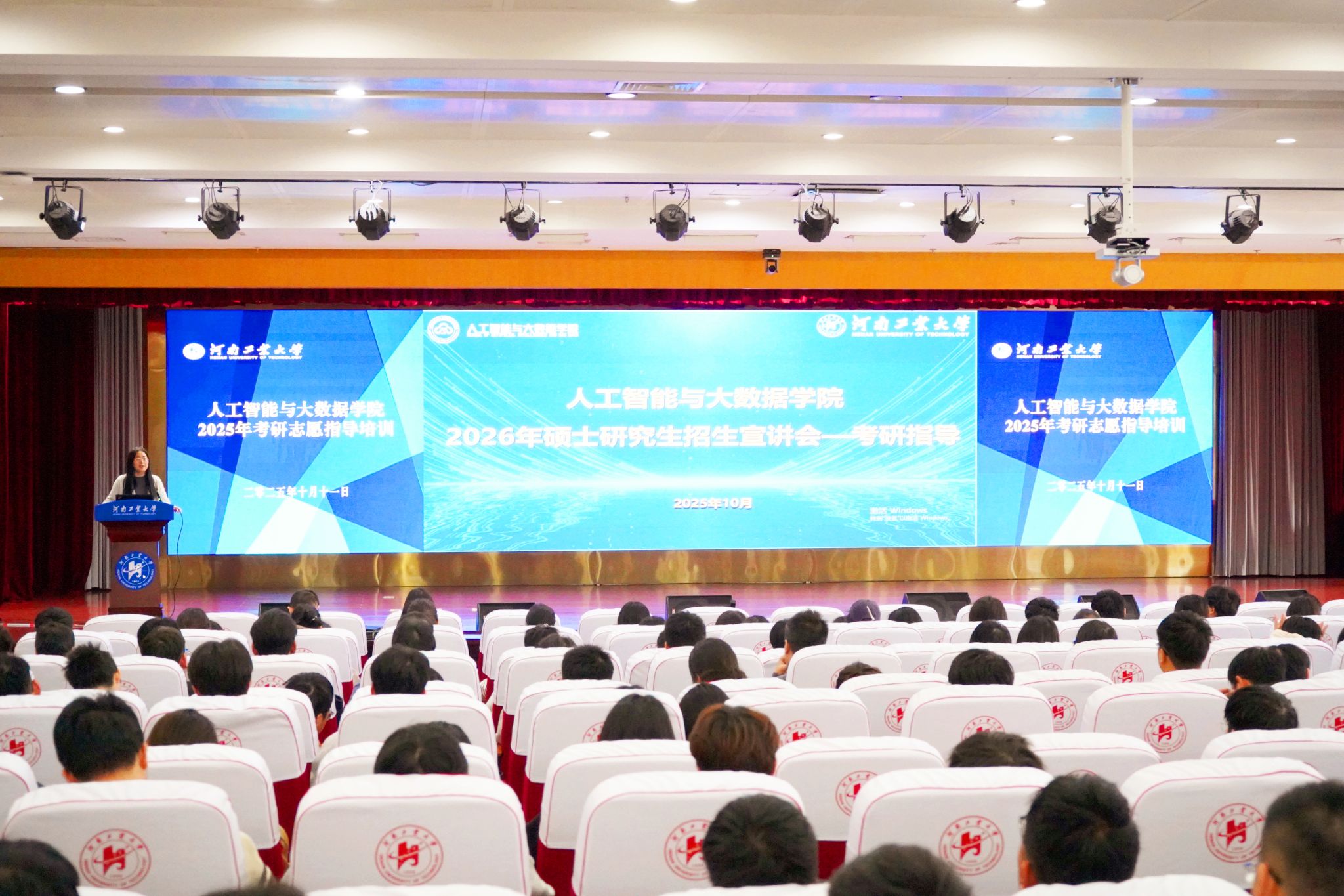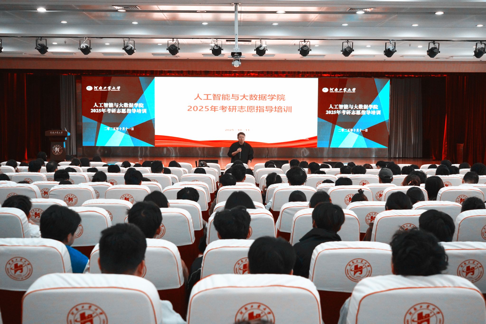 在学术报告厅D303举办考研志愿指导培训。学院副院长朱春华、企业导师张德新、辅导员等为2022、2023级300余名有考研意向的学生,作了细致深入的辅导报告。报告会由学院党委副书记赵志洋主持。