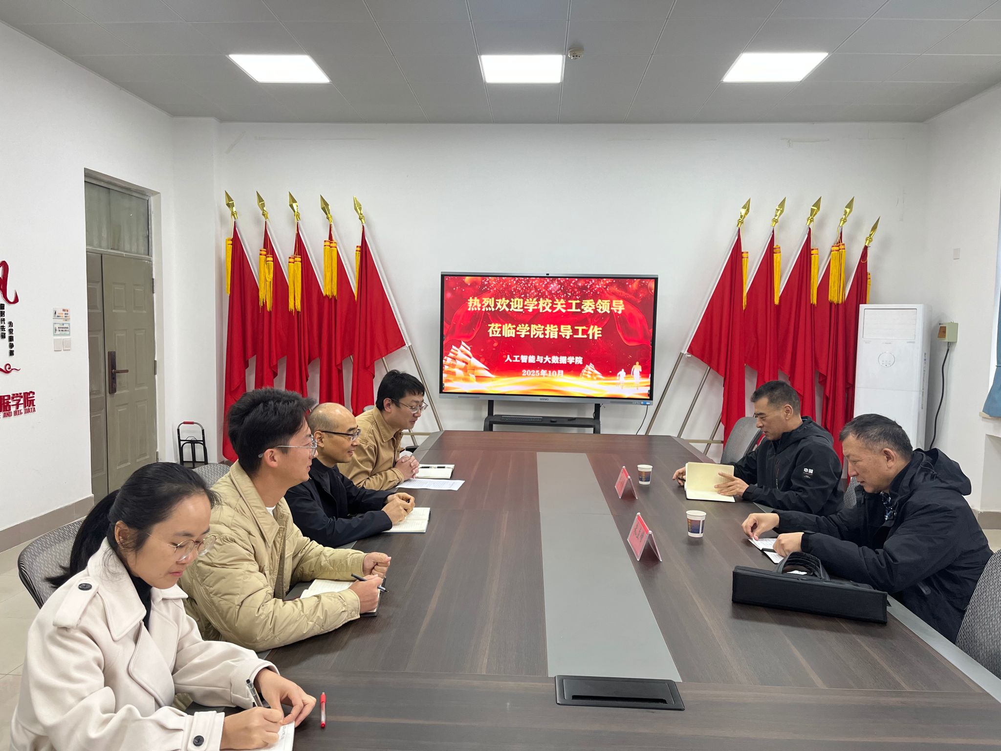 听取汇报后,两位领导对我院关工委工作的扎实成效给予充分肯定,并希望学院关工委要紧紧围绕学校和学院中心工作,持续深化 “五好” 二级关工委建设;抓实抓细《读懂中国》、青蓝工程、知名校友回母校等品牌项目;要进一步挖掘自身特色资源,打造具有学科辨识度的关工委活动品牌,为培育高素质人工智能与大数据人才赋能;要充分发挥联络员和学生委员的桥梁纽带作用,畅通沟通反馈渠道,提升协同育人质效;要强化典型引领的示范价值,深入挖掘 “五老” 先进事迹,讲好退而不休的奉献故事,营造“老带新、传薪火” 的浓厚育人氛围。