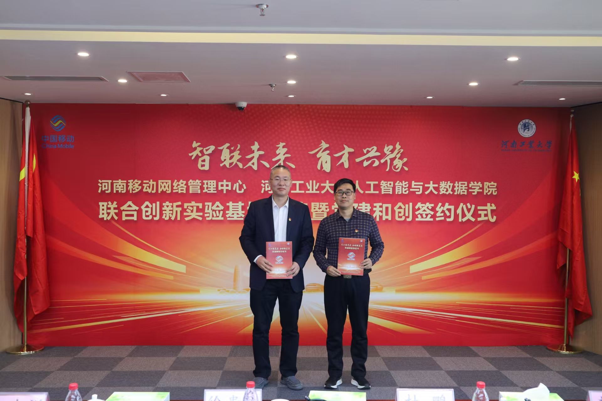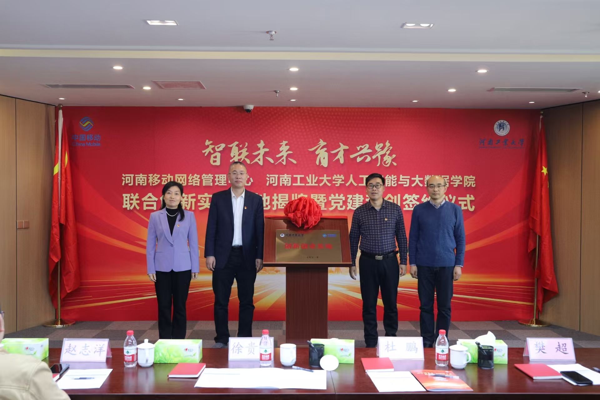与中国移动河南有限公司、华为技术有限公司共同组建的“联合创新实验基地”揭牌成立,同时学院党委与河南移动网络管理中心党总支签署党建和创协议,开启党建引领产教融合的校企合作新模式。学院领导班子和河南移动、华为河南代表处的主要负责人出席了揭牌签约活动。