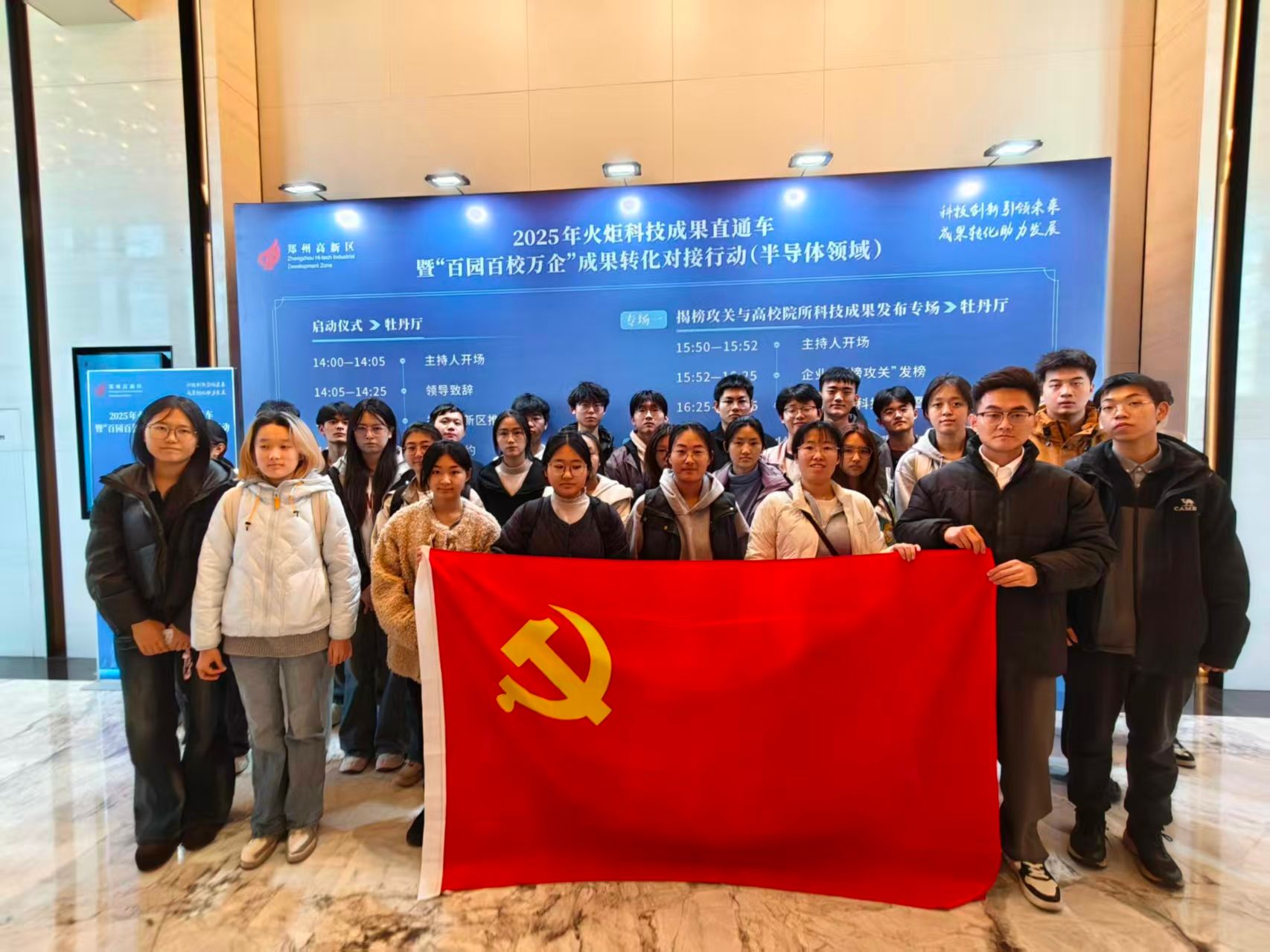 学生第三党支部组织支部党员参与2025年火炬科技成果直通车暨“百园百校万企”成果转化对接活动,以“党建红”赋能“科创蓝”,推动专业学习与产业实践深度融合。