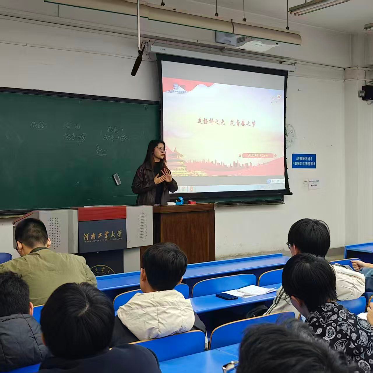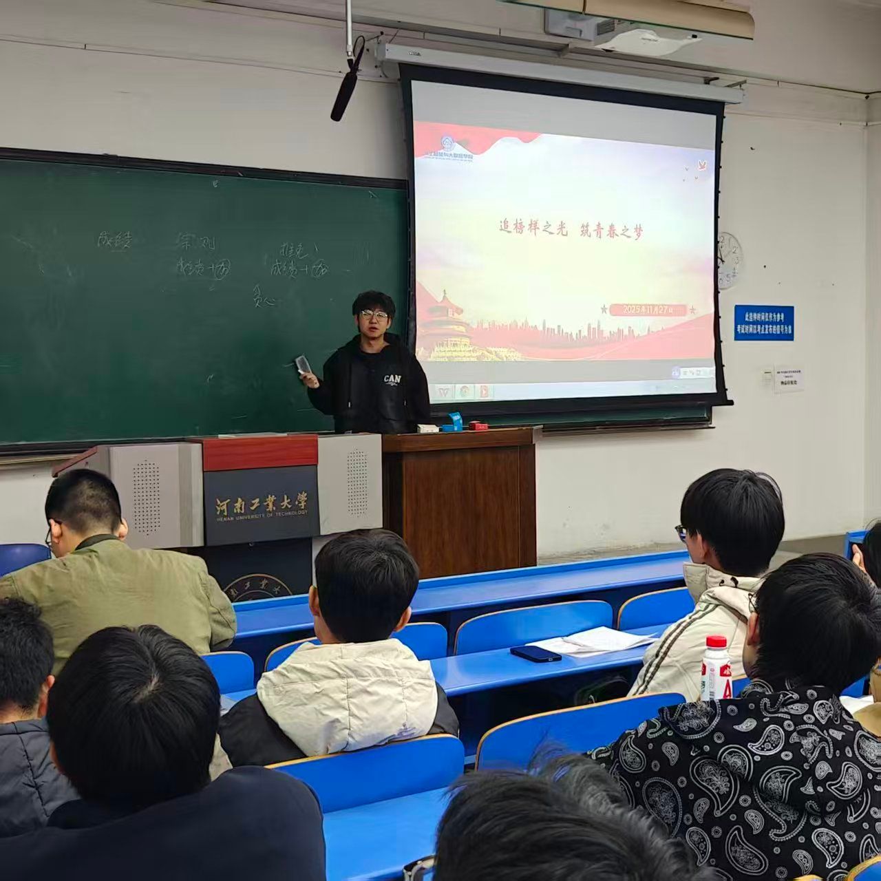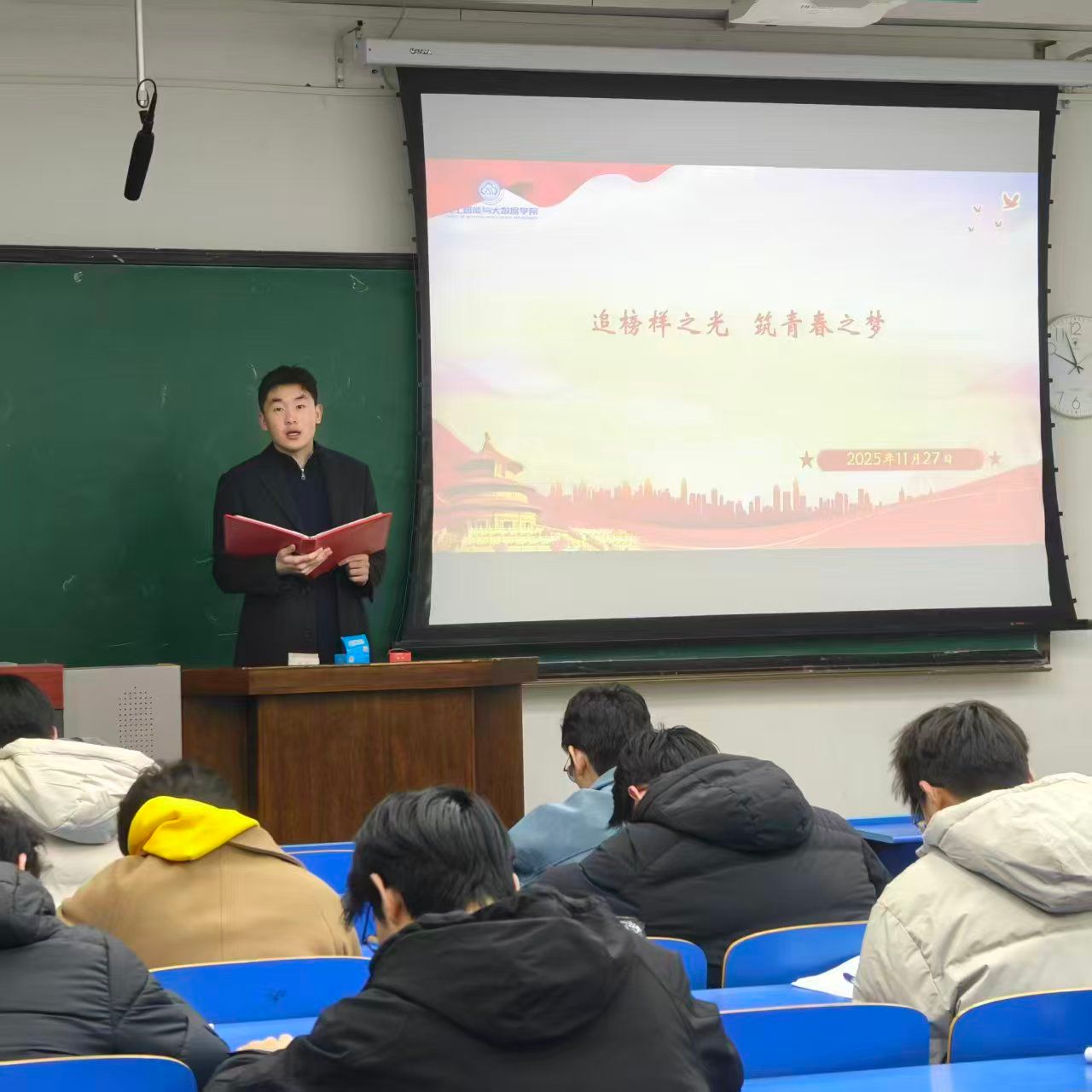 分享环节,房建新以“统筹兼顾,实干成长”为核心,畅谈学生工作与专业学习的平衡之道,强调学生骨干应在服务同学的过程中锤炼责任担当,鼓励同学们在专业领域脚踏实地、深耕细作,用“把每一件小事做到极致”的态度追求成长。