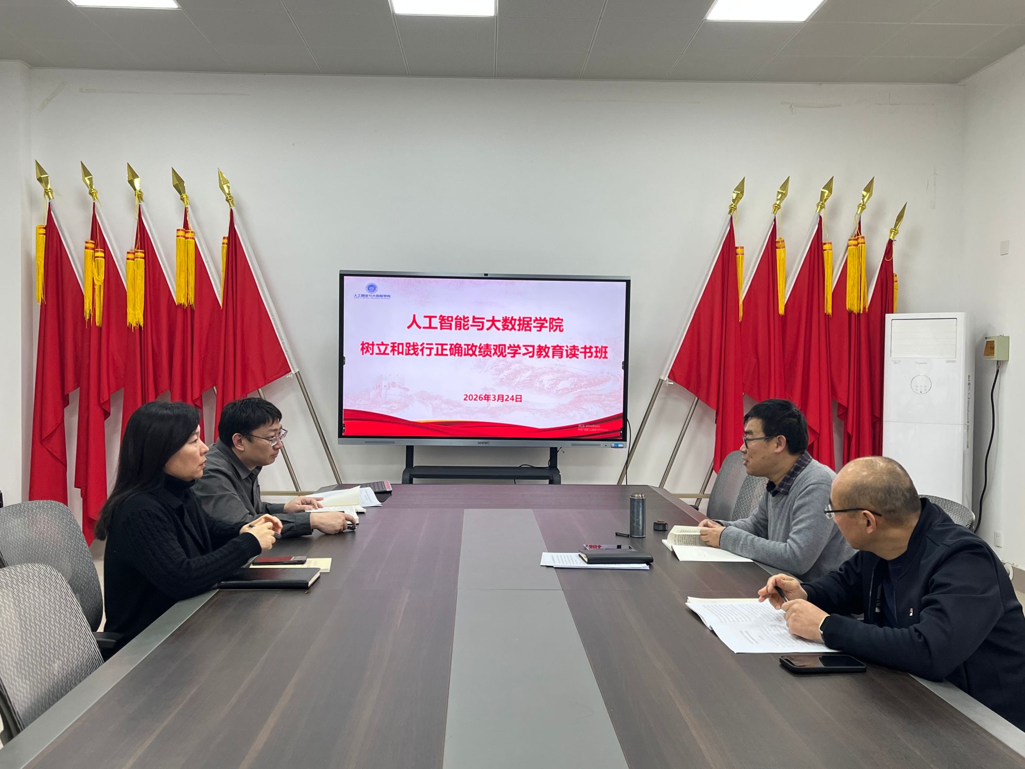 在6369会议室举办树立和践行正确政绩观学习教育读书班。学院党委理论学习中心组成员参加学习。