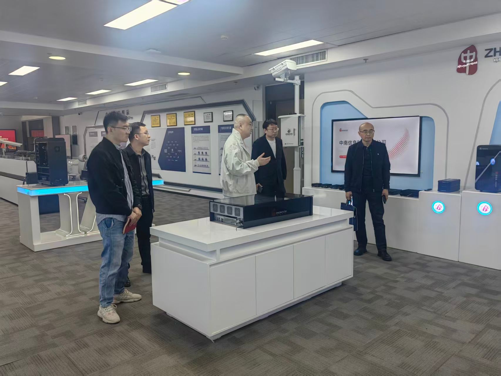 走访期间,学院一行在公司负责人徐琪的陪同下实地参观了企业研发中心和技术展示区,详细了解企业的核心技术产品、应用场景及未来发展规划。中南科技依托鲲鹏打造了智慧停车解决方案,推出云、边、端一体化综合解决方案,具备对客户的全栈服务能力,在智慧园区管理和城市数字化转型方面积累了丰富经验。