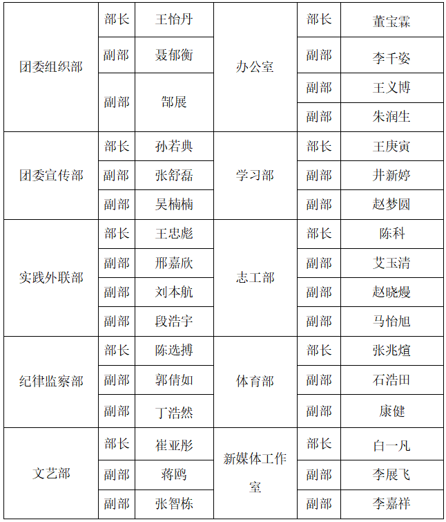 第四届学生会主席团和各部门拟任骨干名单予以公示。