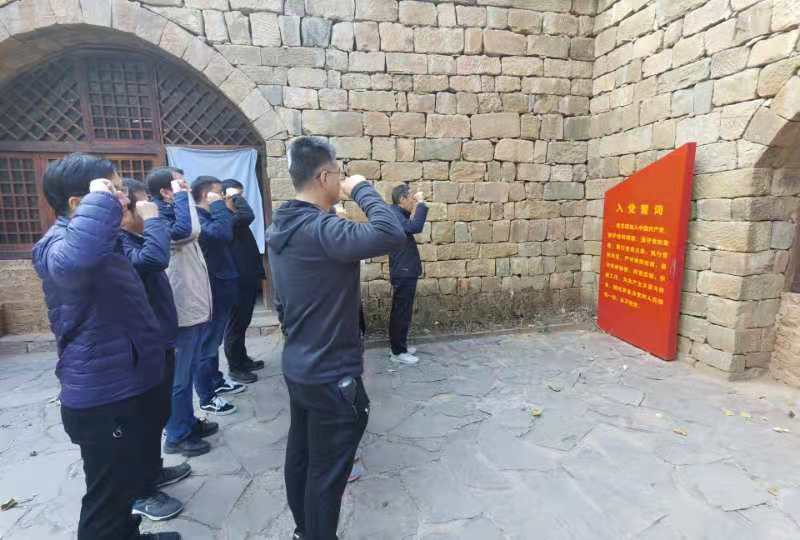 学院教工党员在党委书记付晓炎的带领下首先参观了朱德出太行展览馆,通过观看展览、聆听现场讲解,深入了解了朱德出太行的历史背景。通过重走朱德出太行小道,体会朱德同志为团结抗战不畏艰险、勇于担当的品行,学习朱德同志无限忠诚、光明磊落的党性。在愚公移山红色教育基地教工党员通过现场体验、聆听讲解详细了解了愚公精神愚与智、一与众、内与外、当代与未来、人与自然五个层面的关系,了解了愚公精神上升为民族精神的历史背景及愚公精神的当代內涵。在教育基地付晓炎带领教工党员面向党旗庄严宣誓,重温入党誓词,表达了发扬愚公精神建功新时代的决心。
