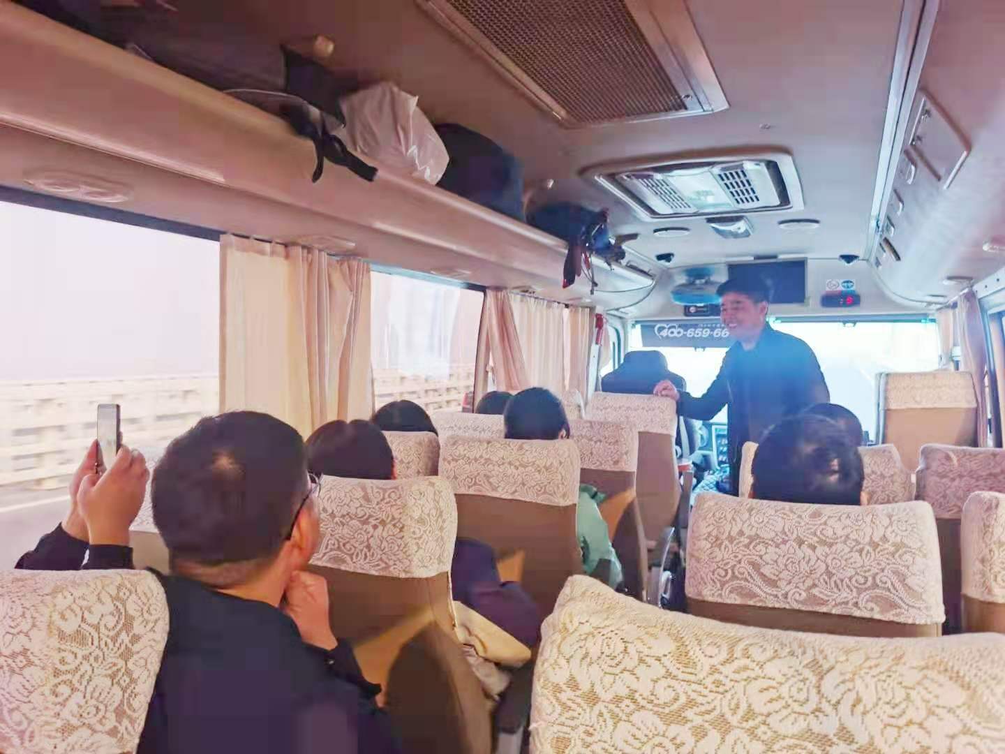 期间,曹坤同志在车上为大家作了《社会主义理论发展史》报告。报告概括梳理了社会主义核心理论及其发展脉络。教育活动间歇,许森同志组织了党建知识竞答活动,通过竞答赢奖品带领大家重新学习了党的最新理论知识。