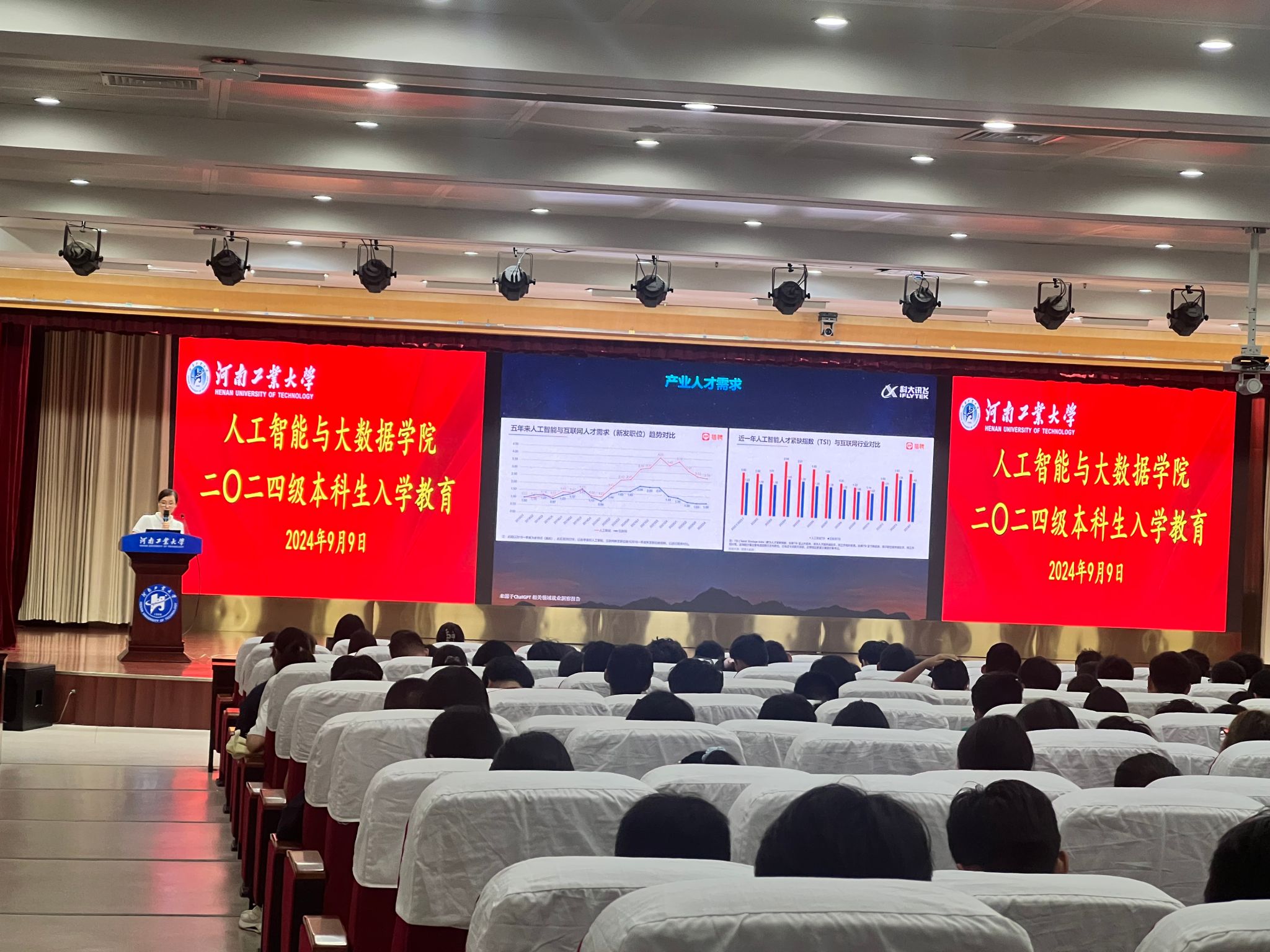 9月9日上午学院邀请了科大讯飞产教融合技术总监江金凤博士,以“AI浪潮,谁主沉浮?——谈数字经济时代新一代信息技术发展、应用及影响”为主题,为新生作了入学教育前沿技术讲座,从技术原理解析到实际应用案例展示,使学生们对这些前沿技术有了更直观深刻的理解。