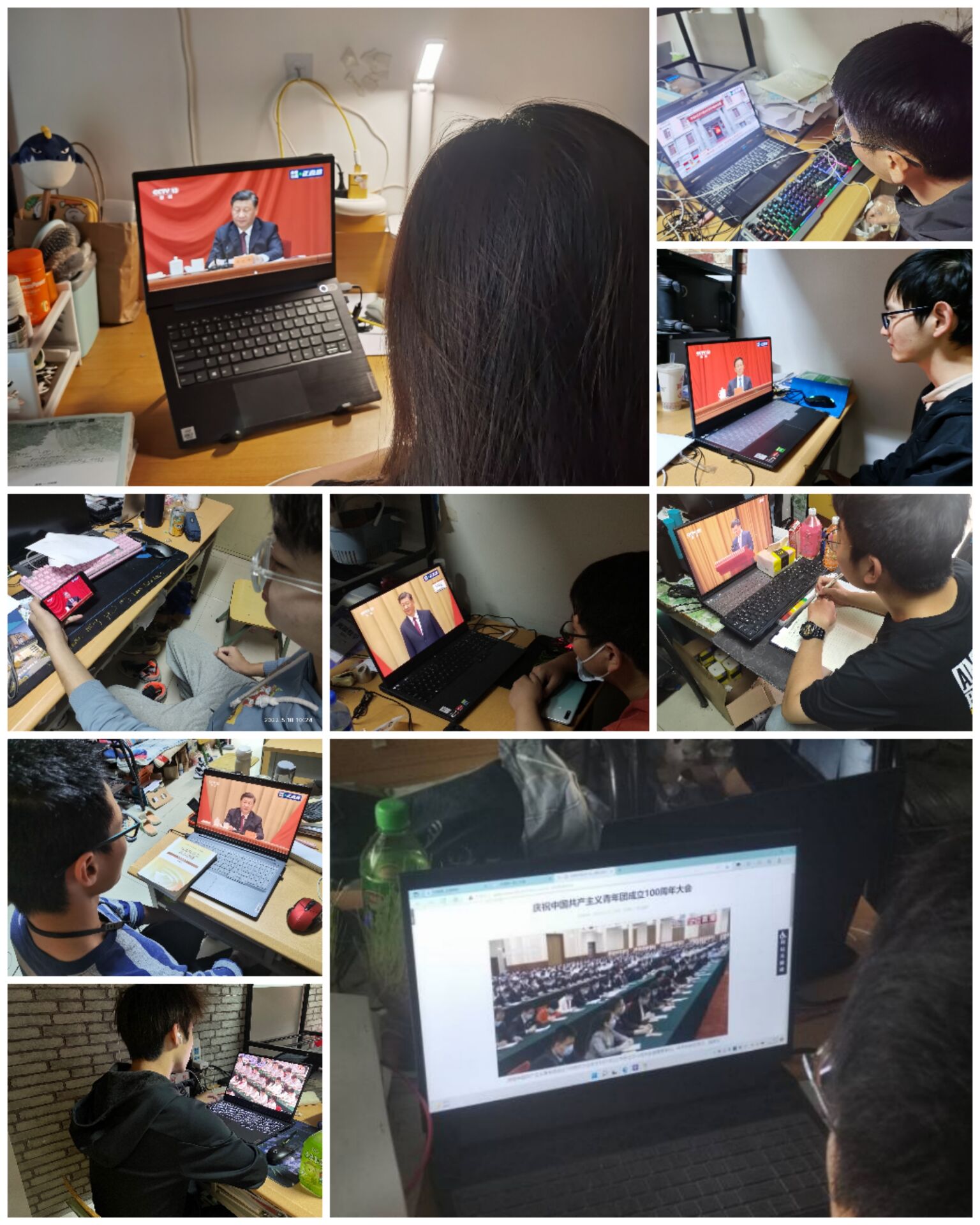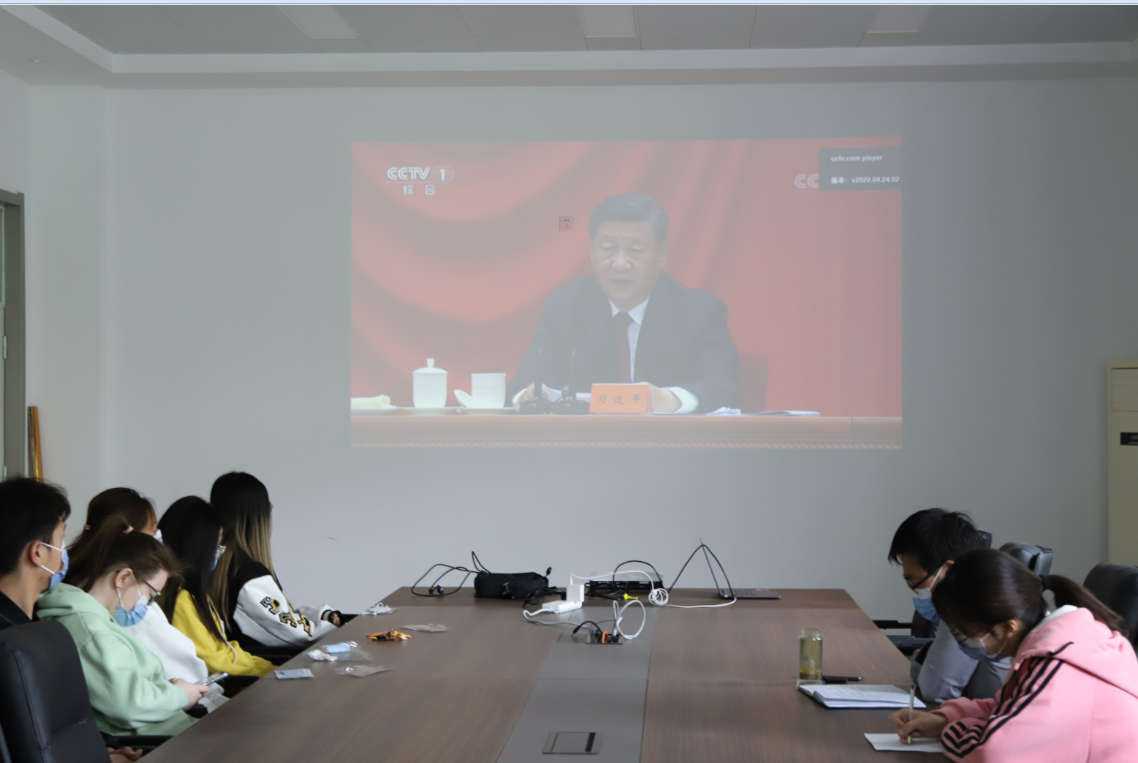 5月10上午10时,庆祝中国共产主义青年团成立100周年大会在北京人民大会堂隆重举行,中共中央总书记、国家主席、中央军委主席习近平发表重要讲话。我院师生通过线上线下多种方式认真收看了大会实况直播,学习领会习近平总书记在庆祝大会上的重要讲话精神。学院党委副书记杜鹏、全体辅导员、团支书代表、学生会干部代表和学生社团负责人代表在学院6369会议室共同观看大会直播。收听收看过程严格遵照学校疫情防控要求进行,参会人员全程佩戴口罩。