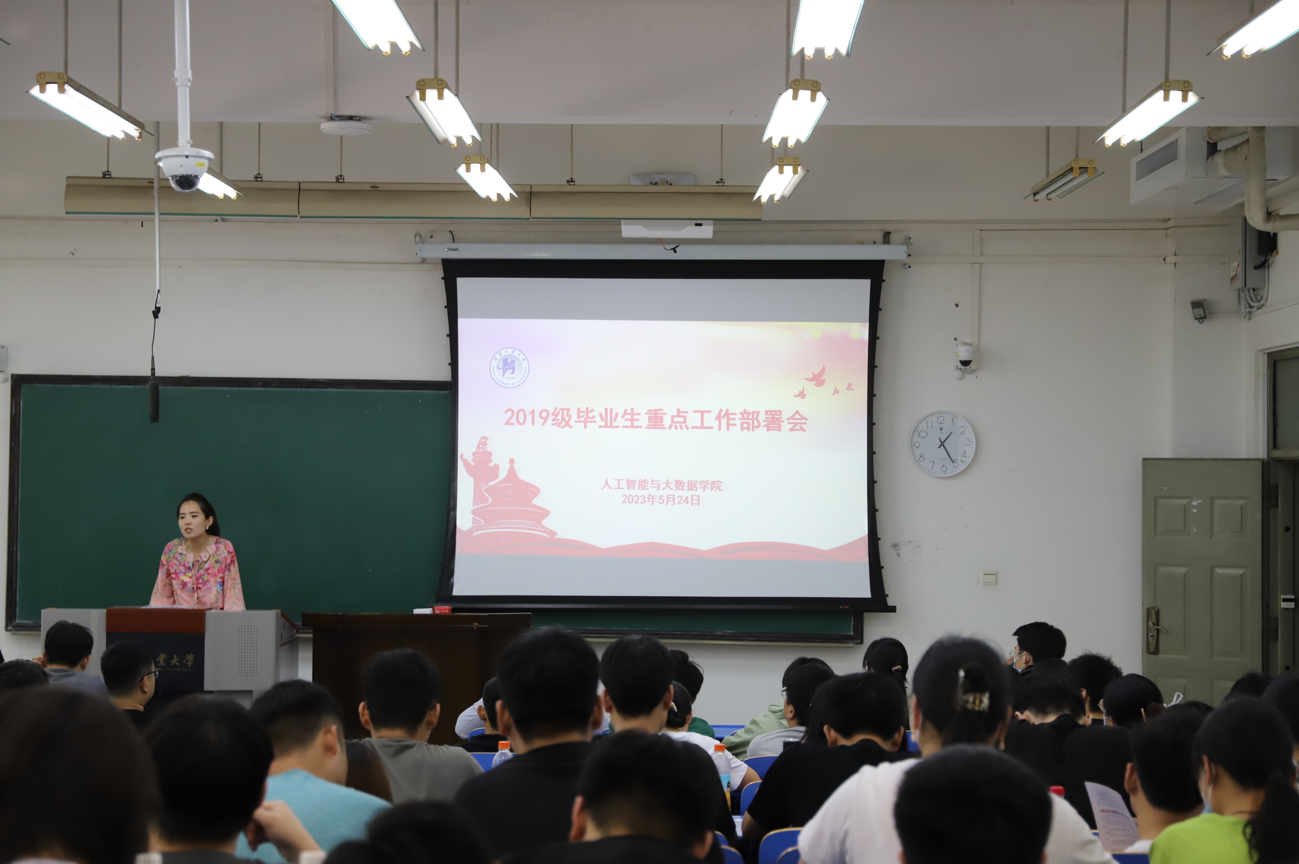 于4206教室召开2019级毕业生重点工作部署会。学院党委副书记薛运侠、全体辅导员老师以及2019级全体毕业生参加会议。会议由学工办副主任陈鸣凘老师主持。