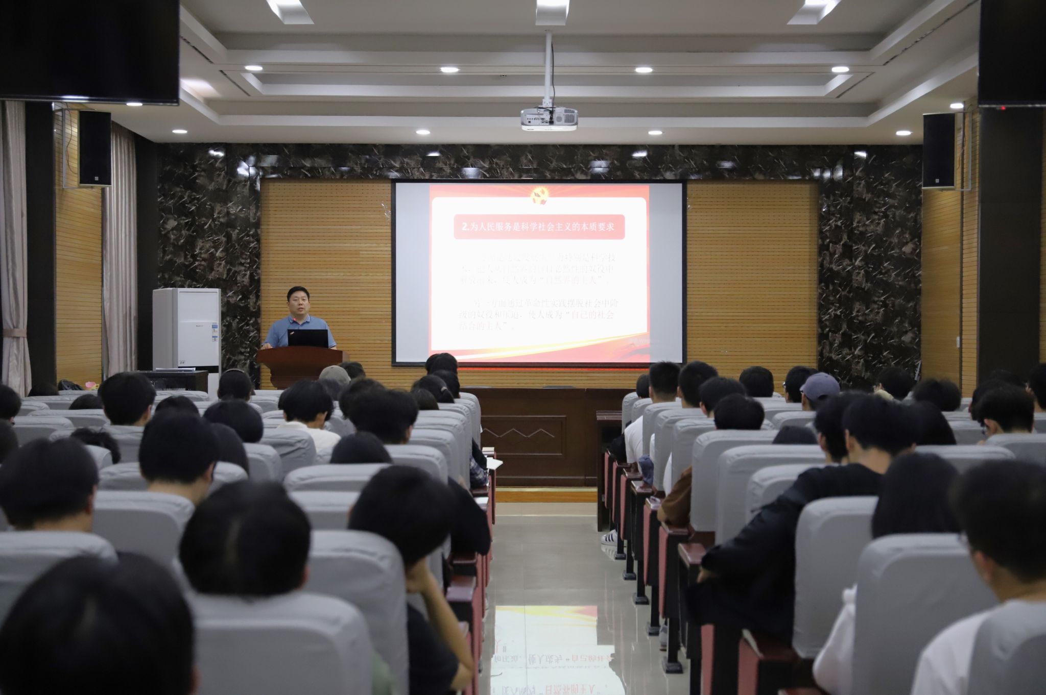 最后,开班典礼在国际歌的歌声中落幕。开班典礼结束后,马克思主义学院党委书记李海涛教授为同学们讲授主题为《中国共产党的宗旨》的第一堂专题党课,他从三个维度解读了全心全意为人民服务的党的根本宗旨,并通过生动的案例分析了中国共产党成功的历史原因与方针政策,阐述了当今时代践行党的宗旨的重要意义。李海涛鼓励学员们肩负历史使命,坚定理想信念,学习党的精神,紧跟党的脚步,为民族复兴大业奋斗终生。