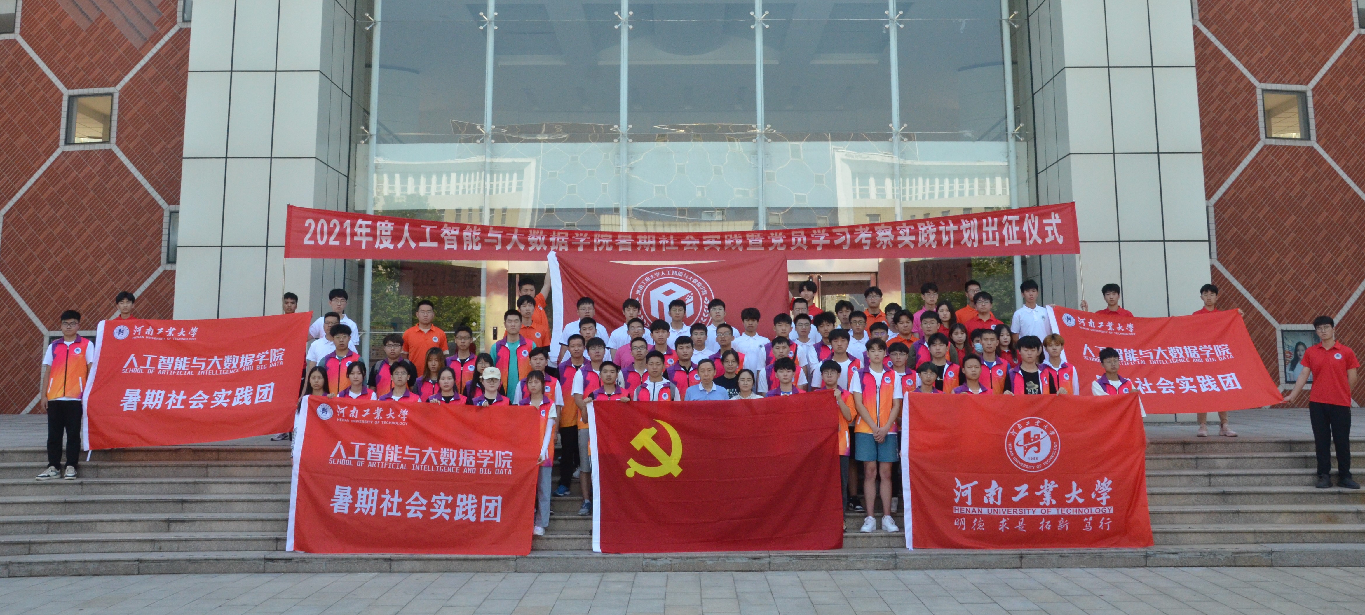 暑期社会实践暨党员学习考察实践计划出征仪式4号教学楼前隆重举行。学院党委书记付晓炎、全体辅导员以及暑期社会实践团的代表们参加了出征仪式。