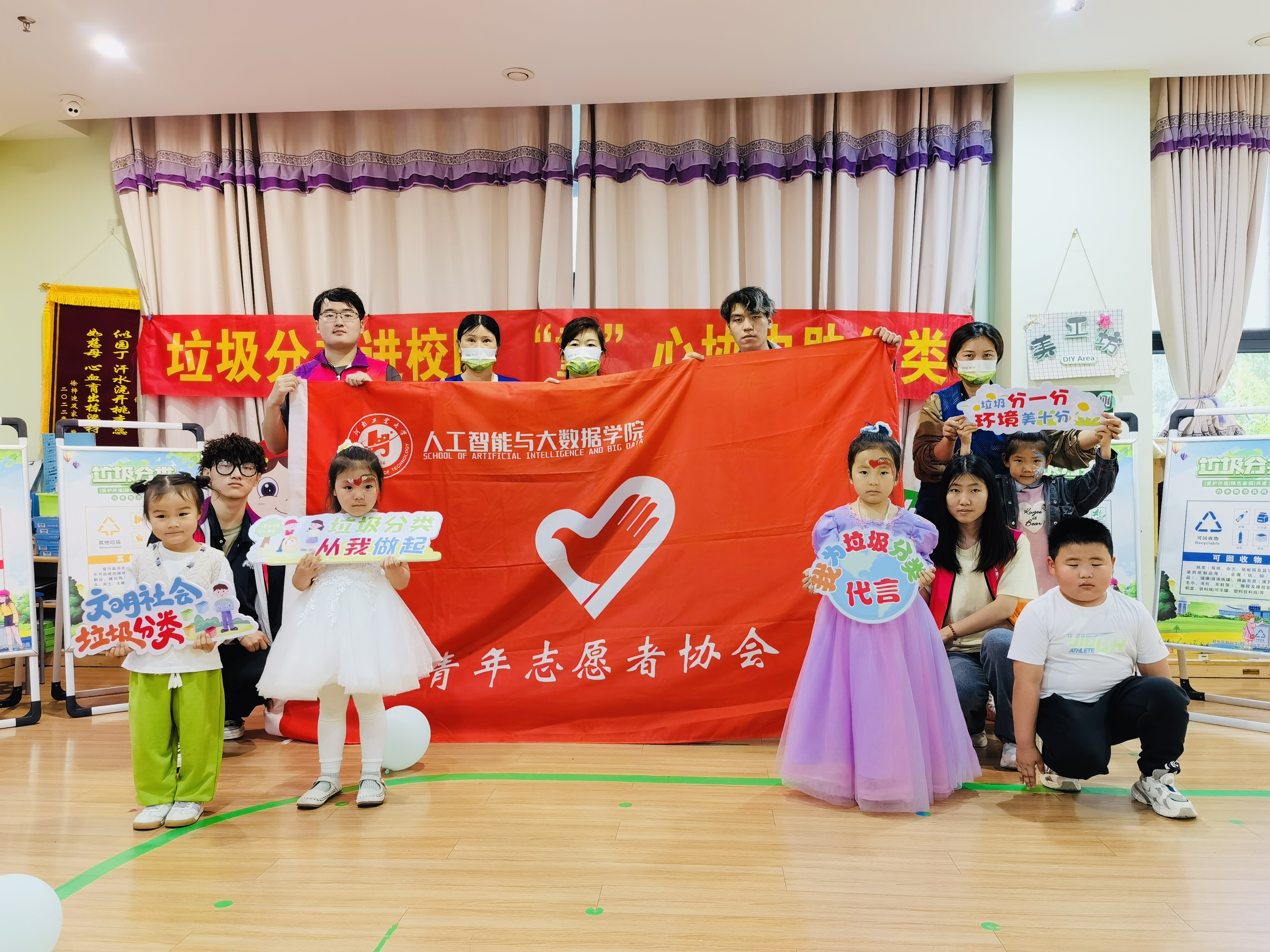 “数智红”志愿服务团在冯特国际荣邦城幼儿园开展了“垃圾分类我能行,废物利用共环保”环保志愿服务活动。在志愿者讲解下,小朋友们学习了垃圾分类的相关知识。让孩子们在以后的生活中要养成垃圾分类、废物利用的好习惯。