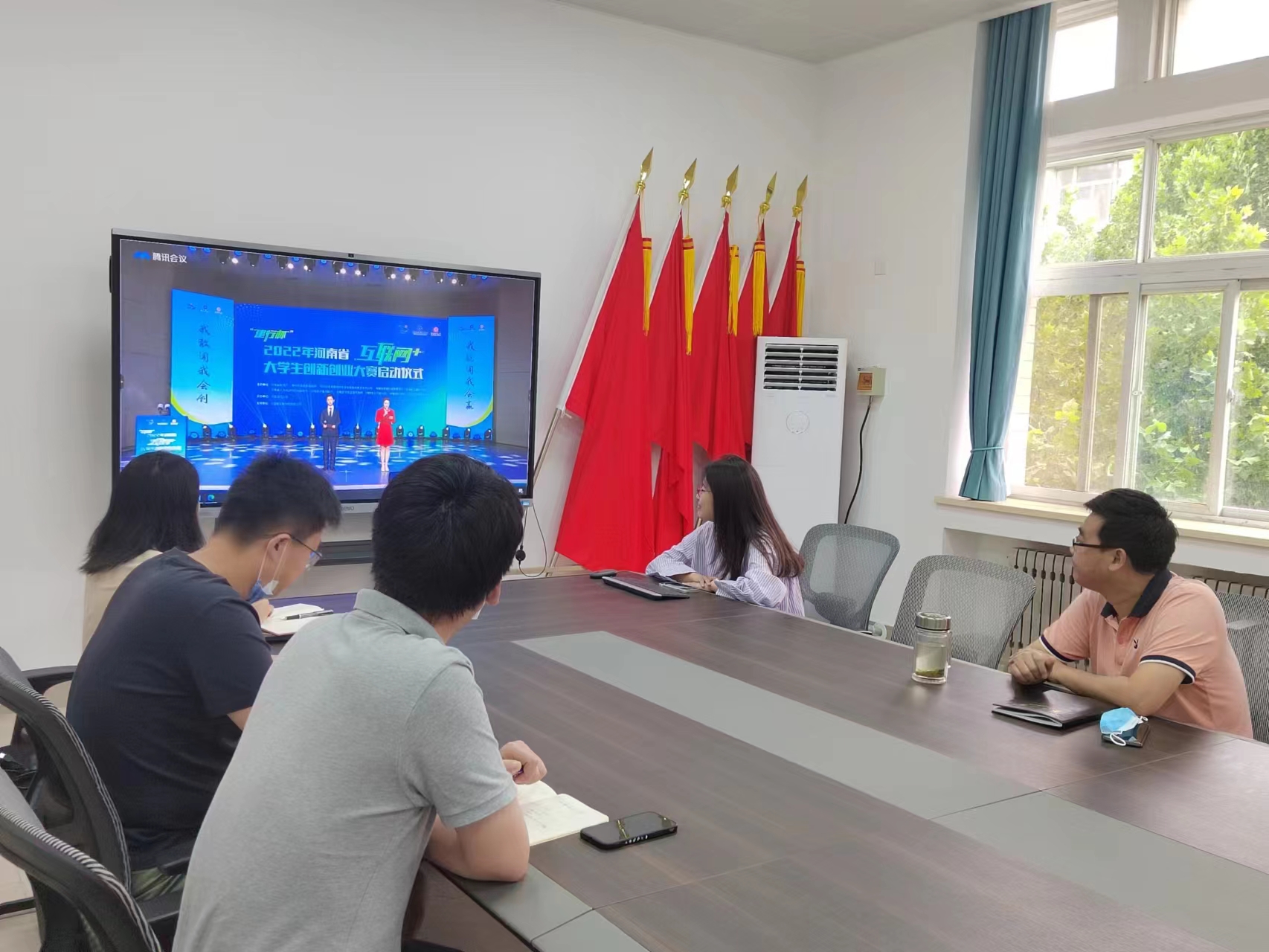 师生近日共同观看了河南省“互联网+”大赛启动仪式。学院党委副书记杜鹏、各项目指导教师、全体辅导员及参赛学生共同观看了本次活动。
