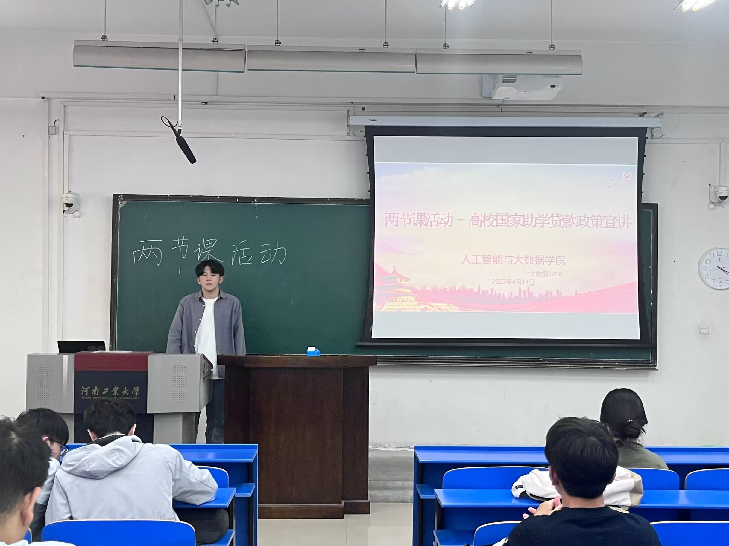 于4月14日,在4431教室开展了两节课活动资助政策宣讲会,学院辅导员、资助助理以及各班级学生代表参加了此次宣讲会。