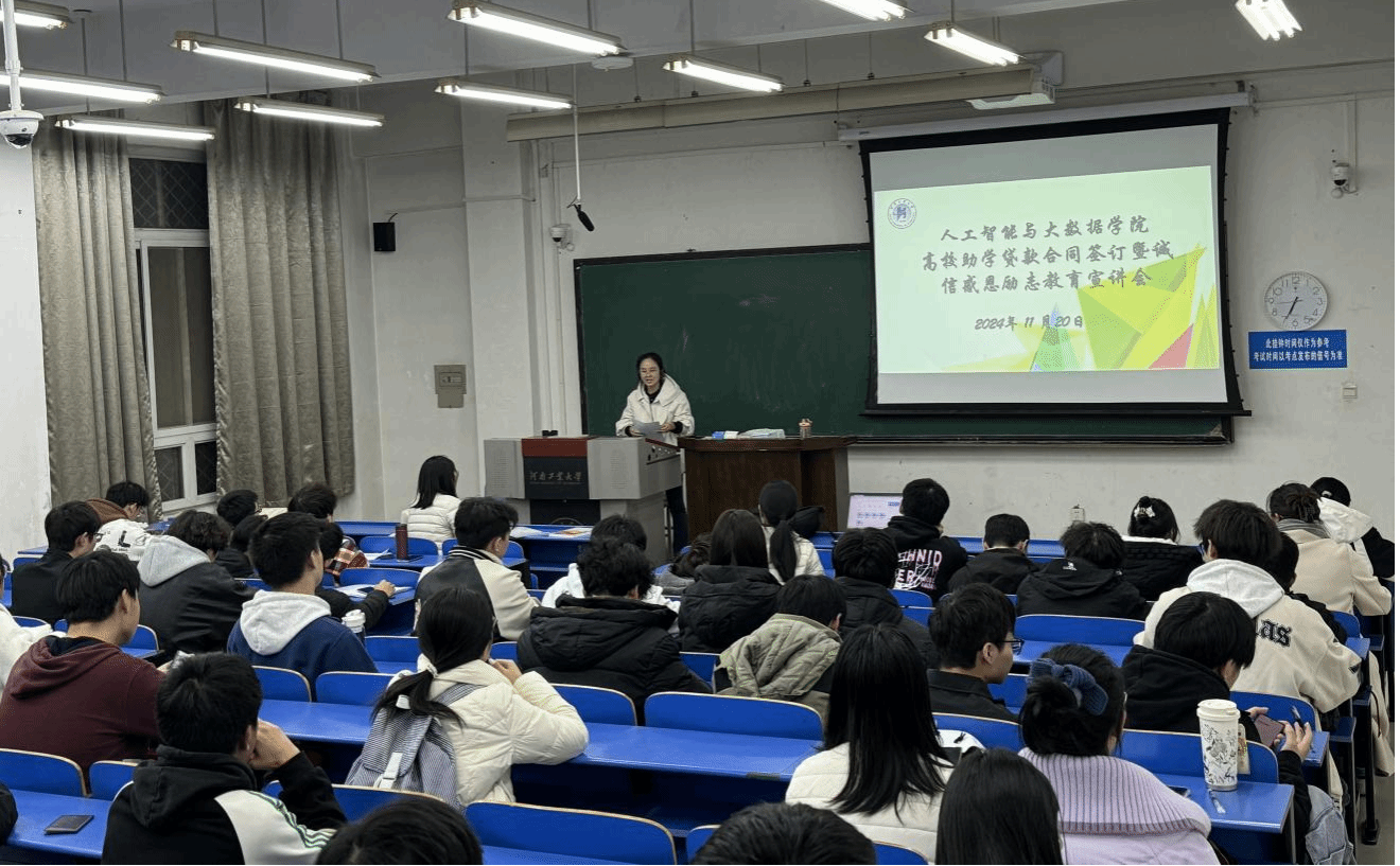 在4112室,召开了2024年高校国家助学贷款合同签订暨诚信感恩教育宣讲会。会议由学院老师齐卫红组织,学院申请高校国家助学贷款的学生、yanetfix