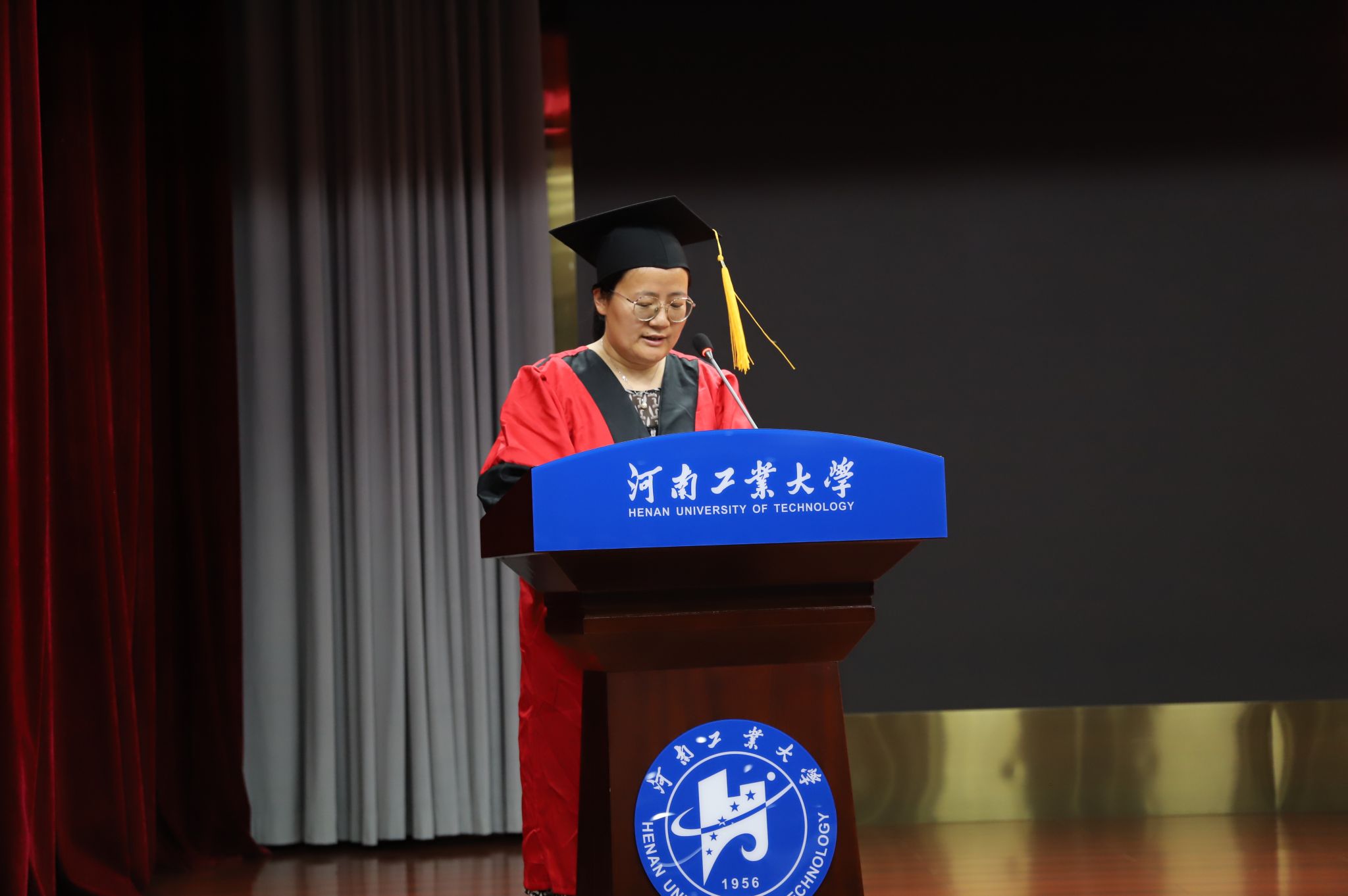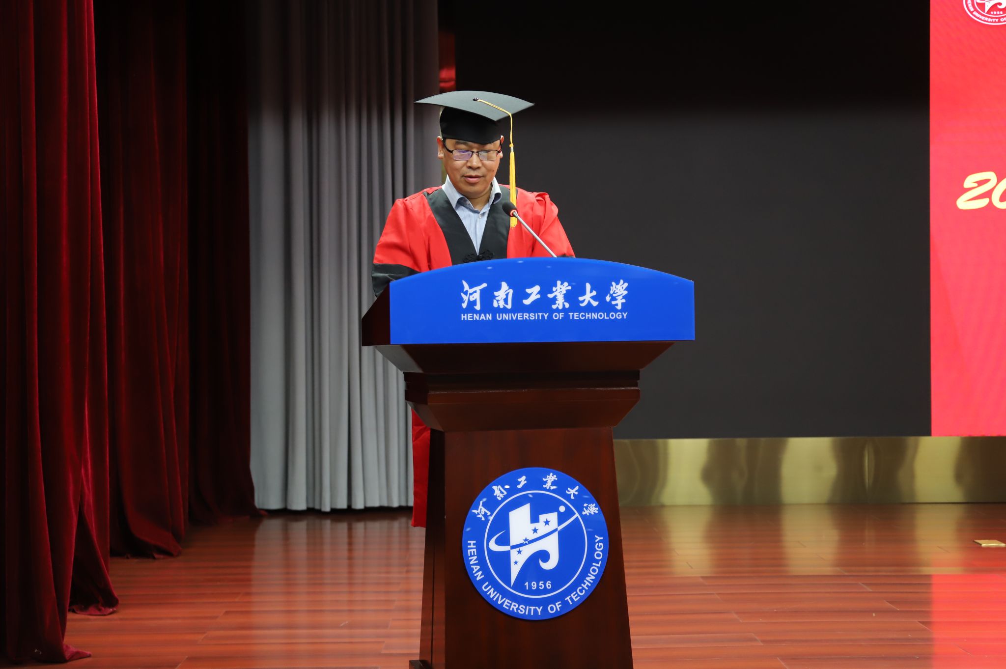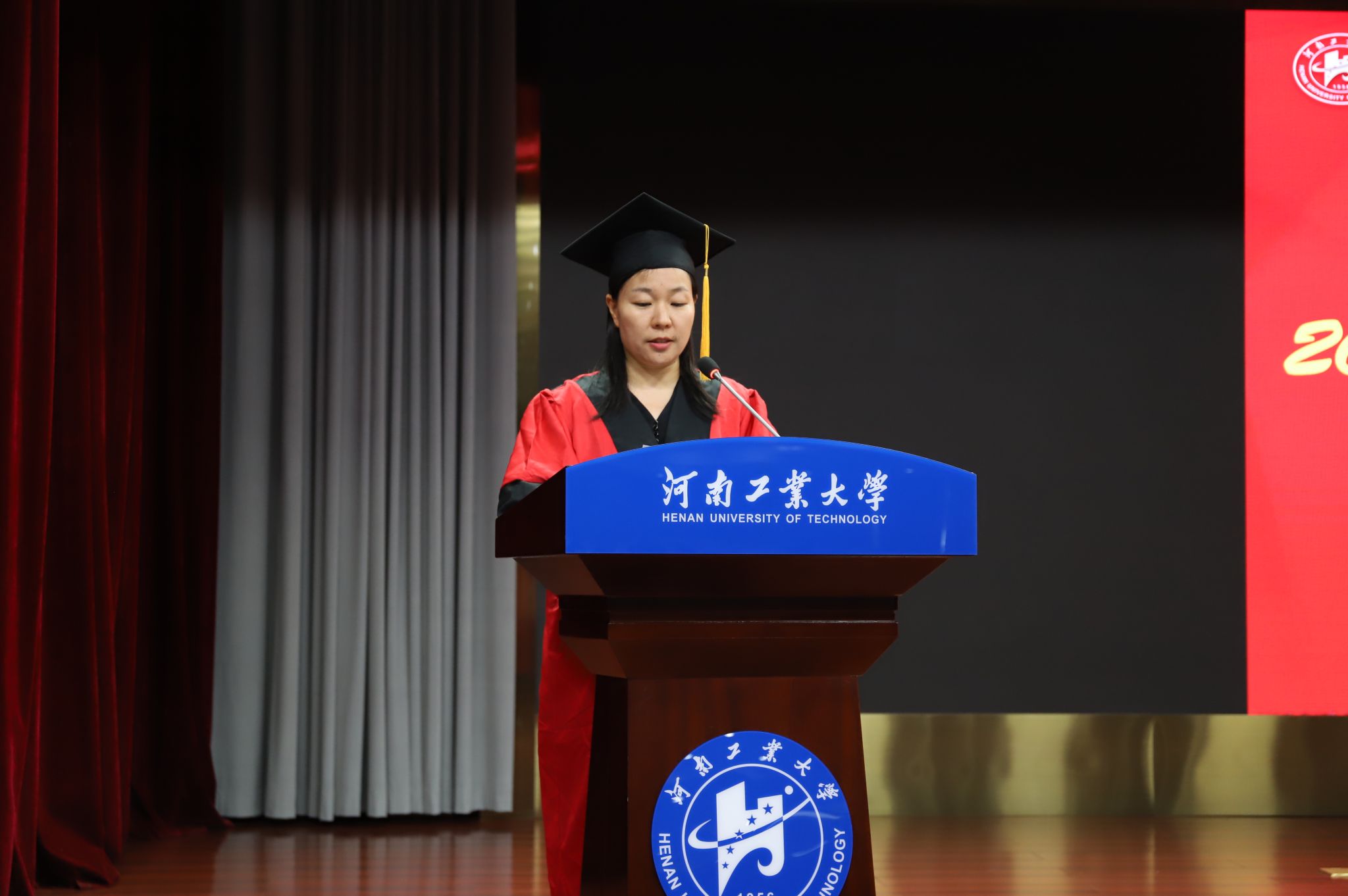 仪式伊始,全场师生垂手肃立,奏唱国歌,毕业典礼暨学位授予仪式正式拉开序幕。