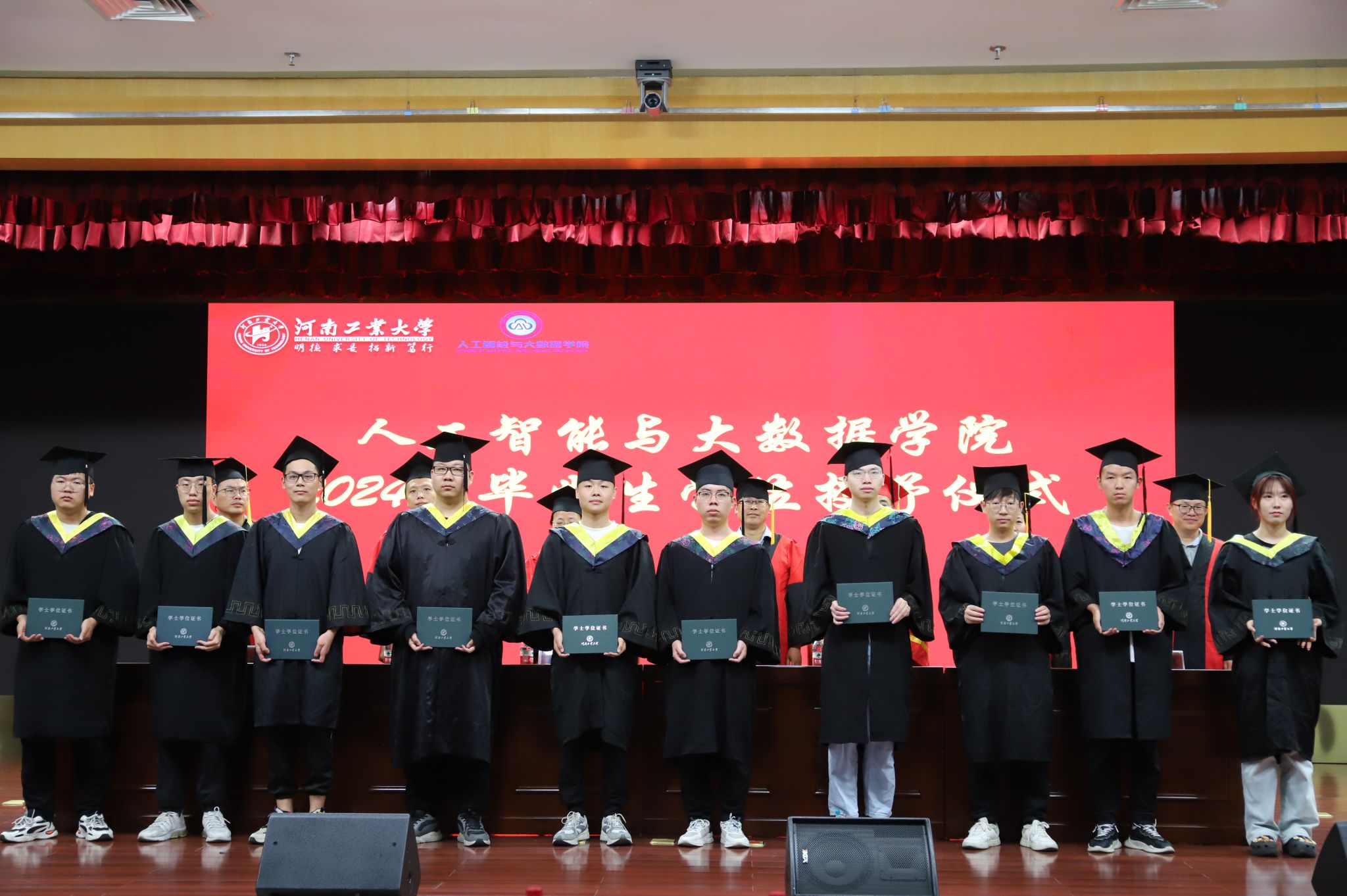 2024届毕业生学业及学位授予情况》,杜鹏宣读了《关于表彰学院2024届优秀应届毕业生的决定》、《关于表彰河南省优秀应届毕业生》和《关于表彰学院2024年数智升学之星的决定》。