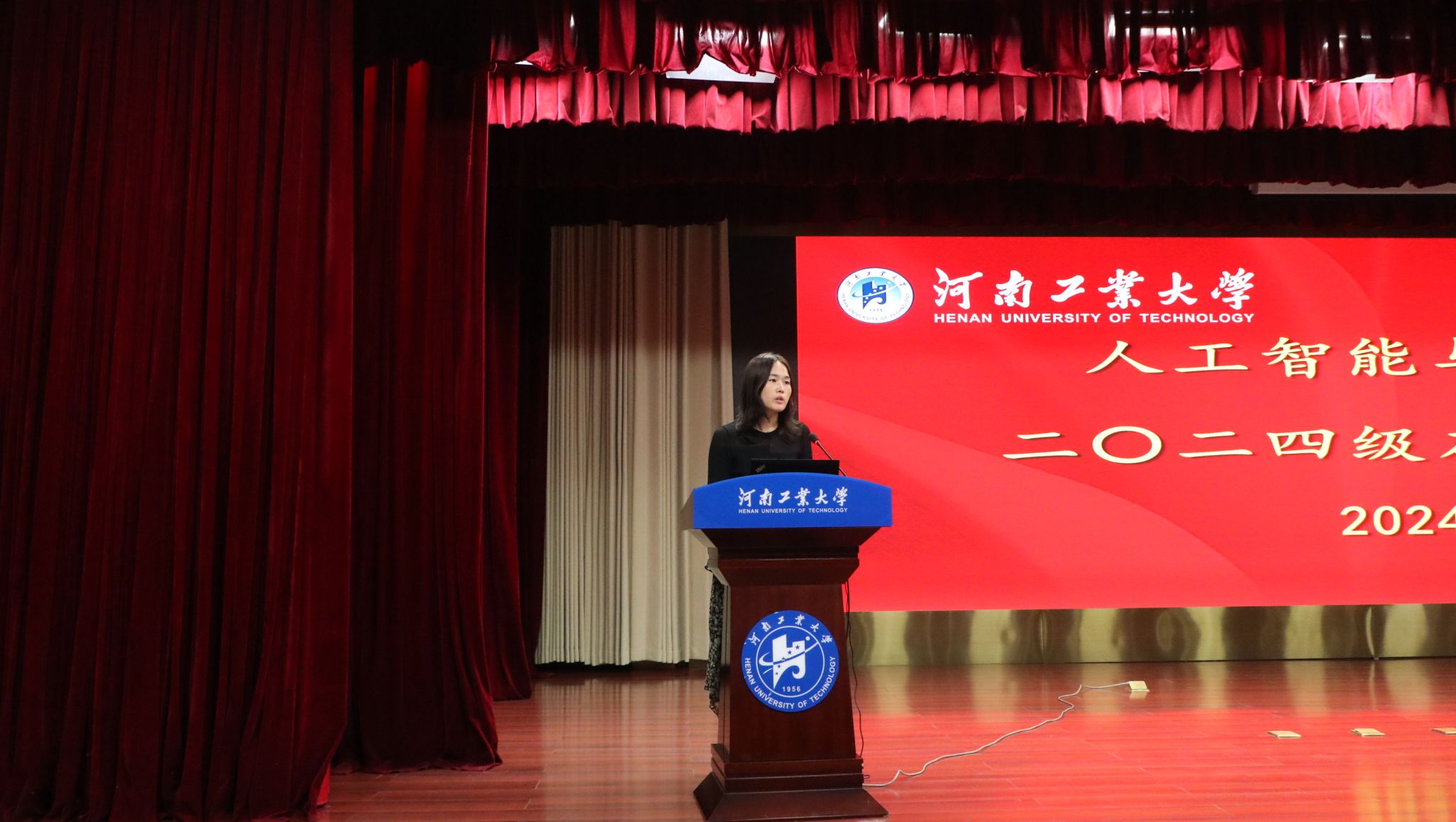 在校生代表软件工程2102班陈仲然,人工智能2106班孙昊哲和数据科学与大数据技术大数据2101班焦康敏作为老生代表,分享了他们的成长故事,勉励24级新同学要扩宽视野,提前了解信息,做好合理规划,积极参与校园活动,拓宽视野与社交能力,在大学里拥抱人生的无限可能,乘风破浪,逐梦远航。软件工程2408班刘子琳、人工智能2402班闫浩宇、数据科学与大数据技术2407班王悠然作为新生代表发言,他们表示,他们将在大学生活中脚踏实地,笃行致远,不忘初心,砥砺前行,将“明德 求是 拓新 笃行”的校训内化于心,外化于行。并希望同学们在奋斗中创造辉煌,追逐梦想。在校园里创造出非凡篇章!